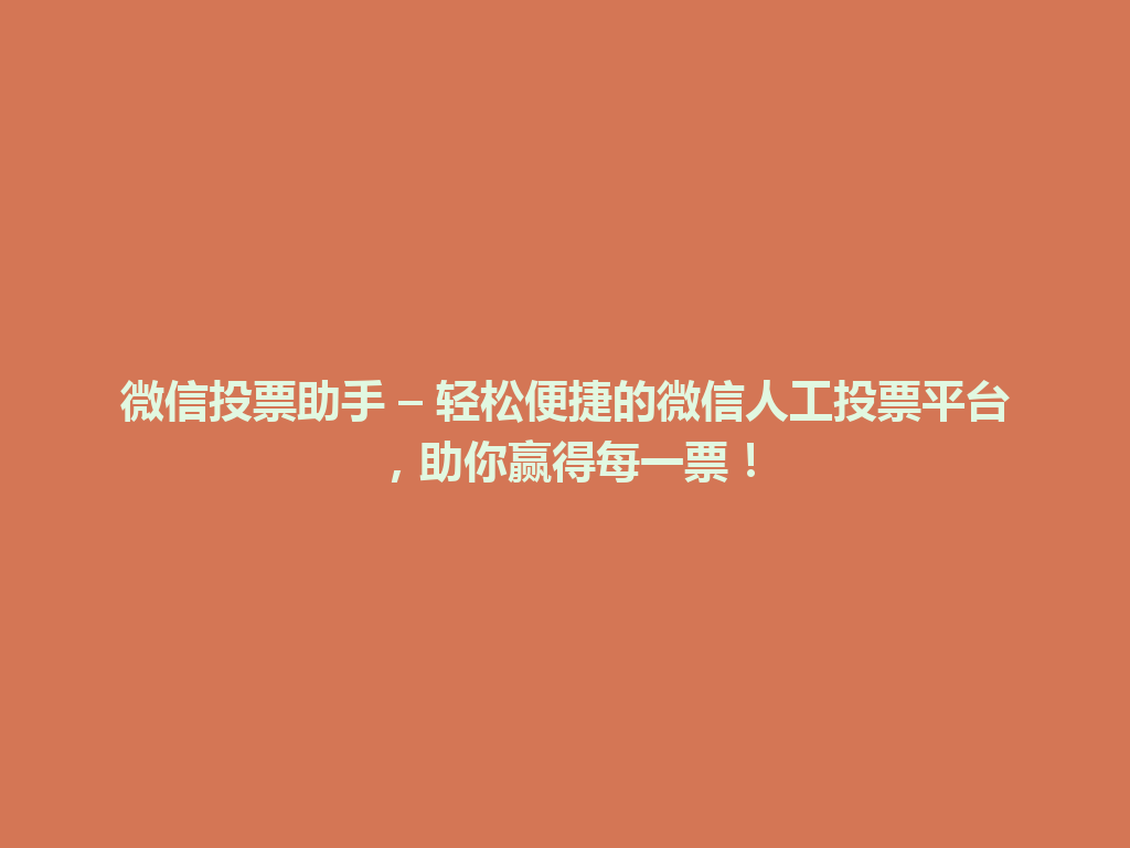 好啦,听到这里,估计你已经心动了。别再犹豫了,快试试这个微信人工投票平台,让你的每一票都变得更有力量!你只需简单操作,获得更多的支持与参与,让每一位朋友都能通过微信为你助力,轻松赢得胜利!